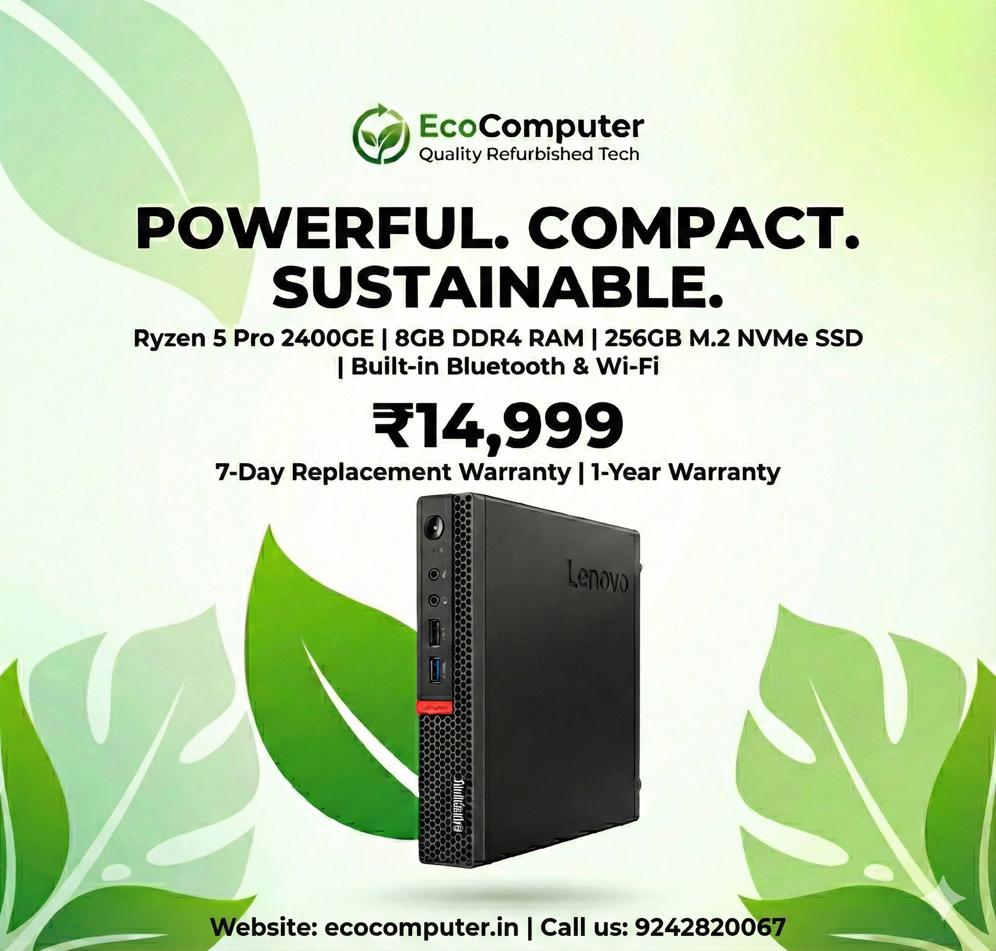 - Lenovo Think Centre M715q (2nd Gen) - tiny - Ryzen 5 Pro 2400GE 3. 8 GHz - 8 GB - 256 GB M.2 NVME SSD Wifi Bluetooth Inbuild 7days replacement warranty 1year warranty
